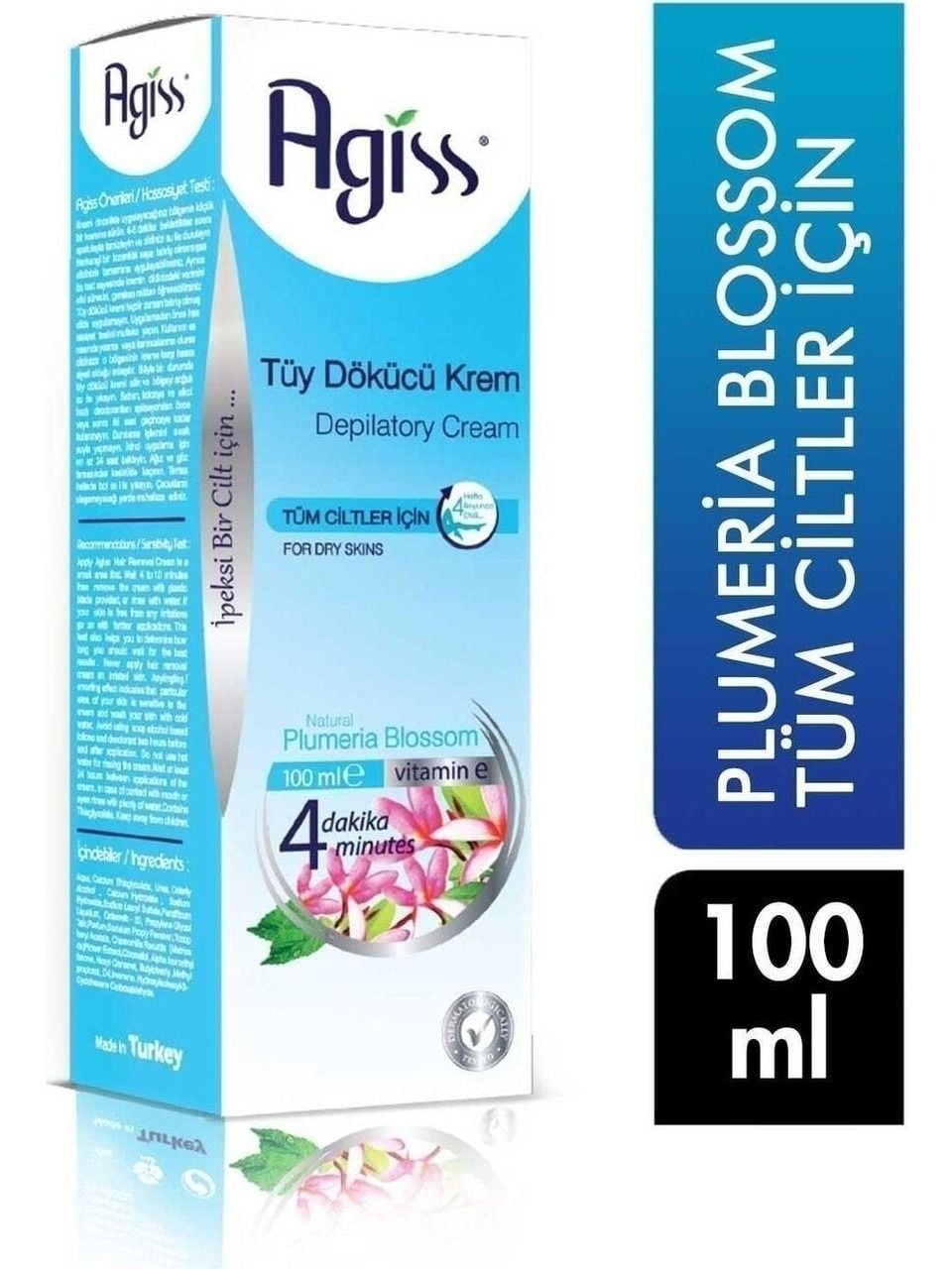 Agiss Tüy Dökücü Krem Tüm Cilt 100 ml, tüm cilt tiplerine uygun olarak geliştirilmiş etkili bir tüy dökücü kremdir. 100 ml’lik pratik ambalajı ile uzun süre kullanılabilir ve tüm vücut bölgelerinde rahatça uygulanabilir. Ürün, ciltte herhangi bir tahrişe neden olmadan tüyleri köklerinden alır ve pürüzsüz bir cilt bırakır.