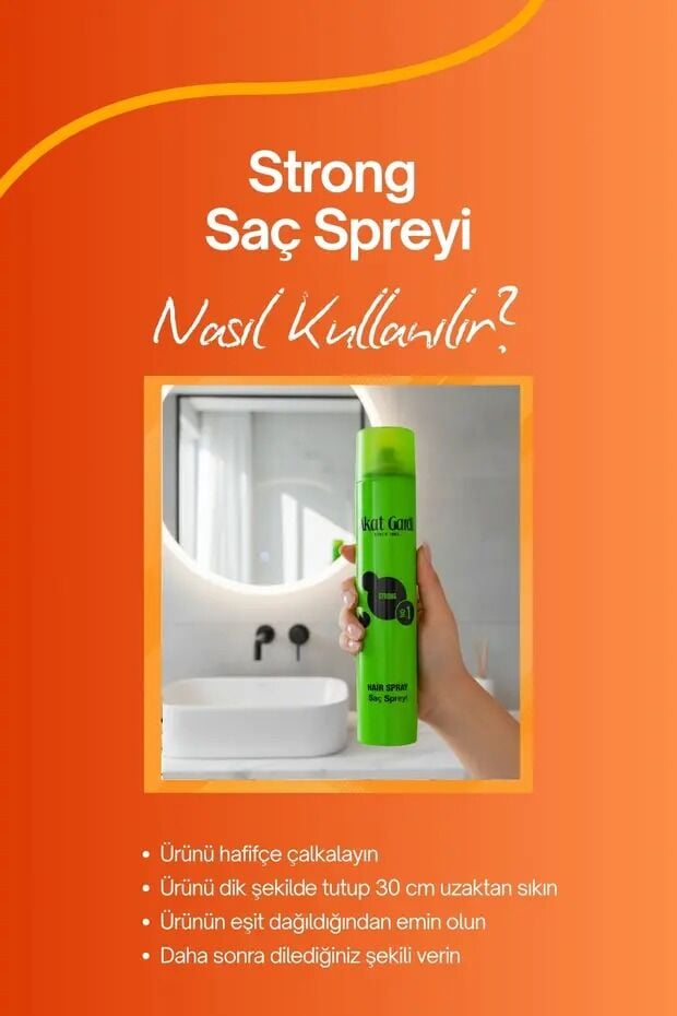 Akat Gardi Saç Spreyi Strong 400Ml Yeşil No:1, saç stilinizi tüm gün boyunca sabitlemek için geliştirilmiş yüksek performanslı strong saç spreyi formülüyle karşınızda. İster günlük kullanım, ister özel gün stili için olsun, bu güçlü saç sabitleyici sprey, saçlarınızda sertlik ya da ağırlık hissi bırakmadan uzun süreli tutuş sağlar. Özellikle saç şeklini korumakta zorlanan veya yoğun tempoda dış etkenlere maruz kalan saçlar için idealdir.