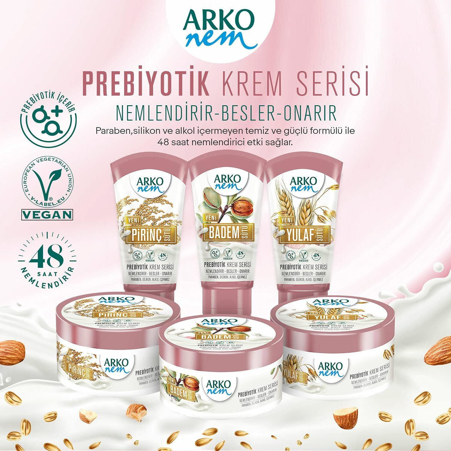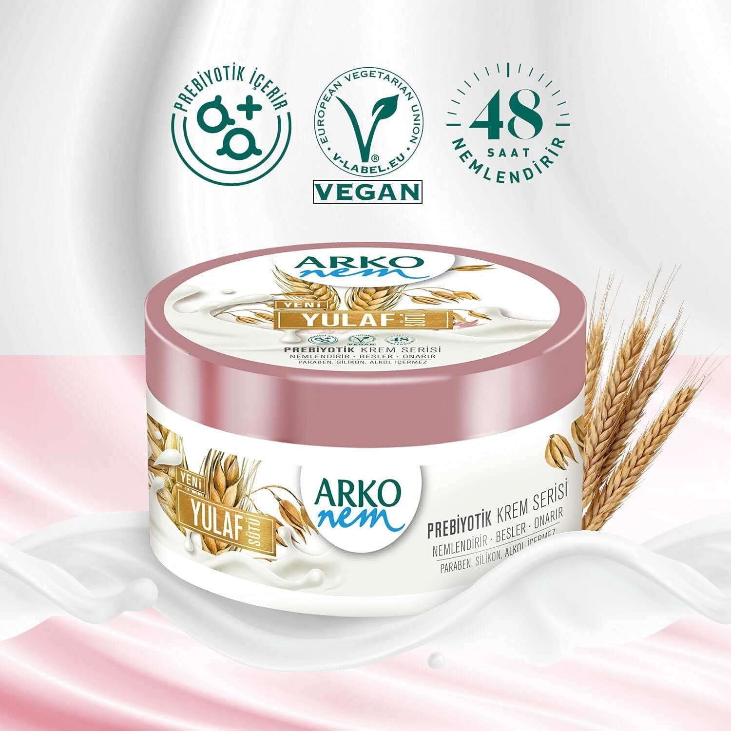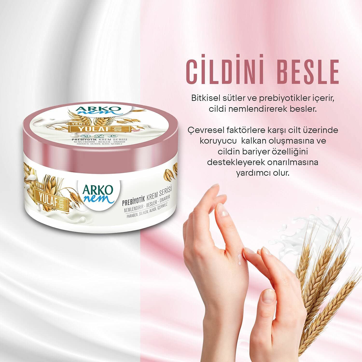 - Arko Nem Prebiyotik Krem Yulaf Sütü’ni avucunuza alın.