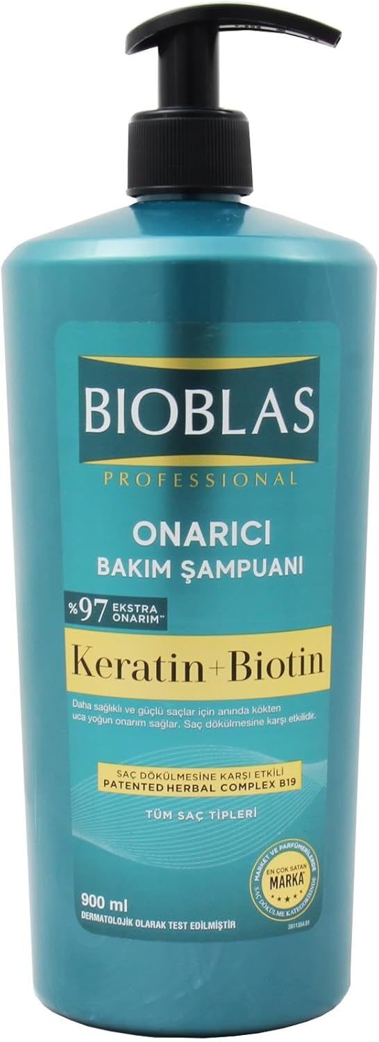 BIOBLAS Keratin ve Biotin Onarıcı Bakım Şampuan 900 ml – Kırılgan ve Yıpranmış Saçlara Özel Yoğun Onarım ve Güçlendirici Bakım