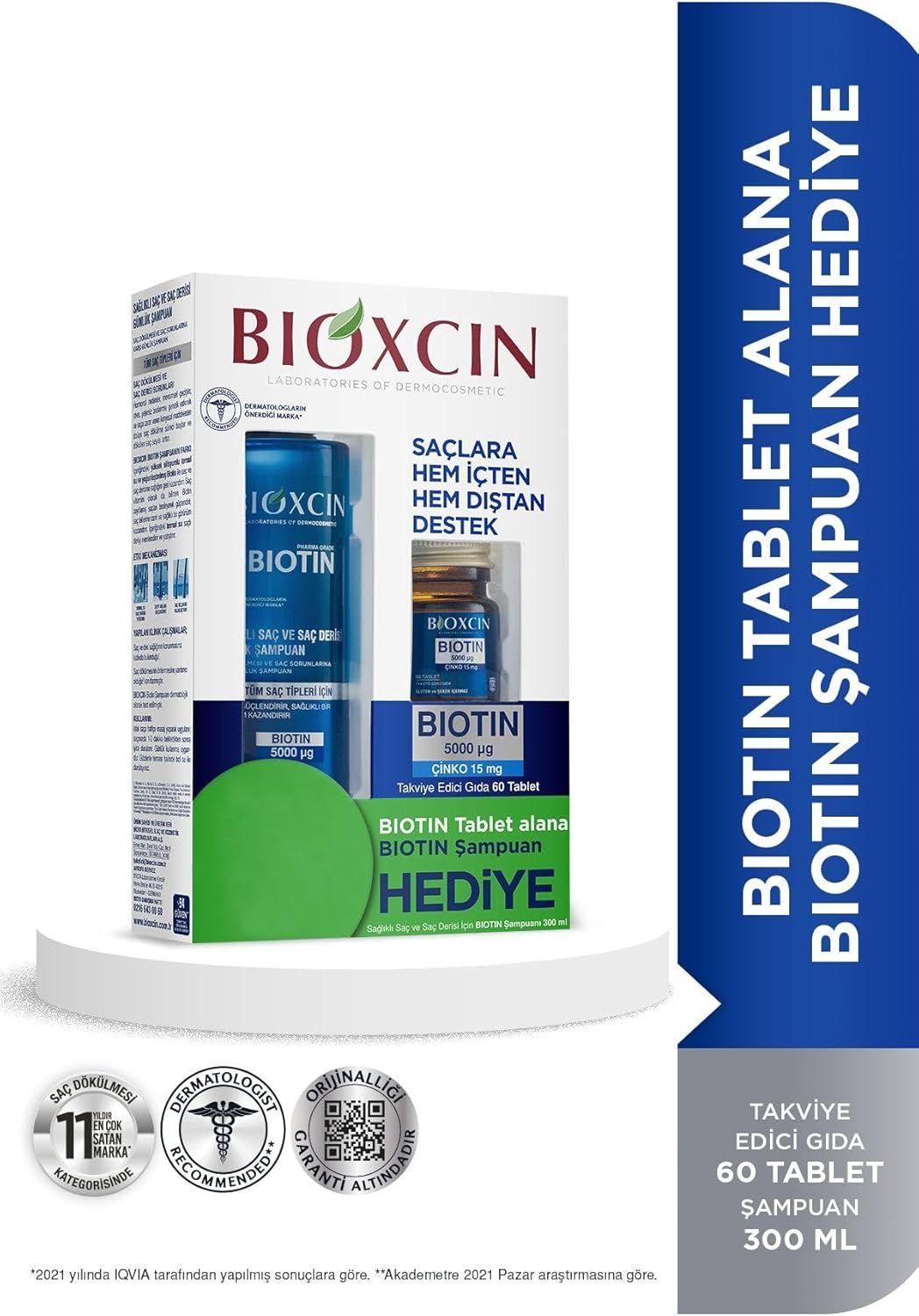 Bioxcin Biotin 5000 mg Çinko 15 mg + Biotin Şampuan 300 ml - Saç Sağlığı İçin Güçlü Destek