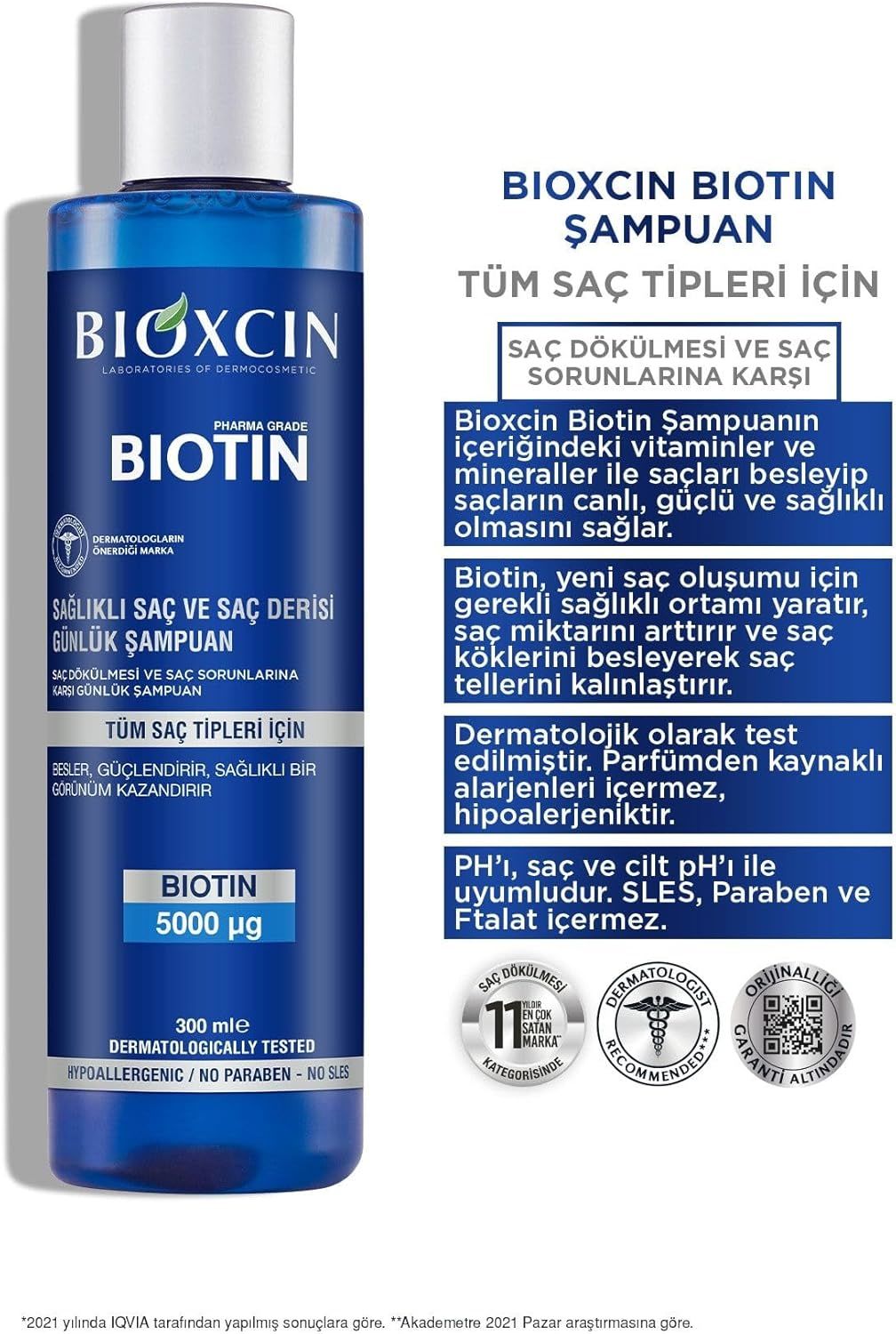 Saçınıza ihtiyacı olan güçlü desteği sağlamak için Bioxcin Biotin 5000 mg Çinko 15 mg + Biotin Şampuan 300 ml'i deneyin. Sağlıklı, güçlü ve parlak saçlara kavuşun!