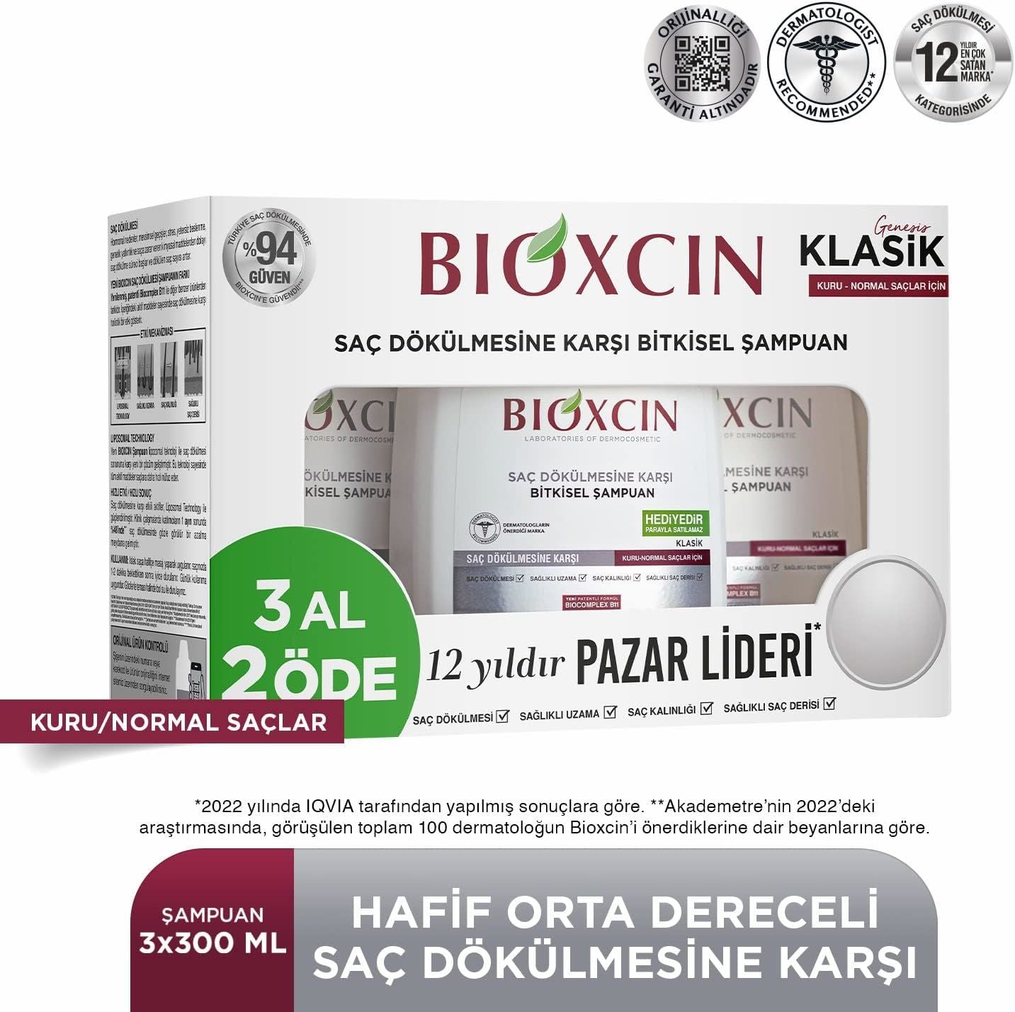 Bioxcin Genesis Kuru ve Normal Saçlar için Şampuan 3x300 ml - Saç Dökülmesine Karşı Etkili Nemlendirici Bakım