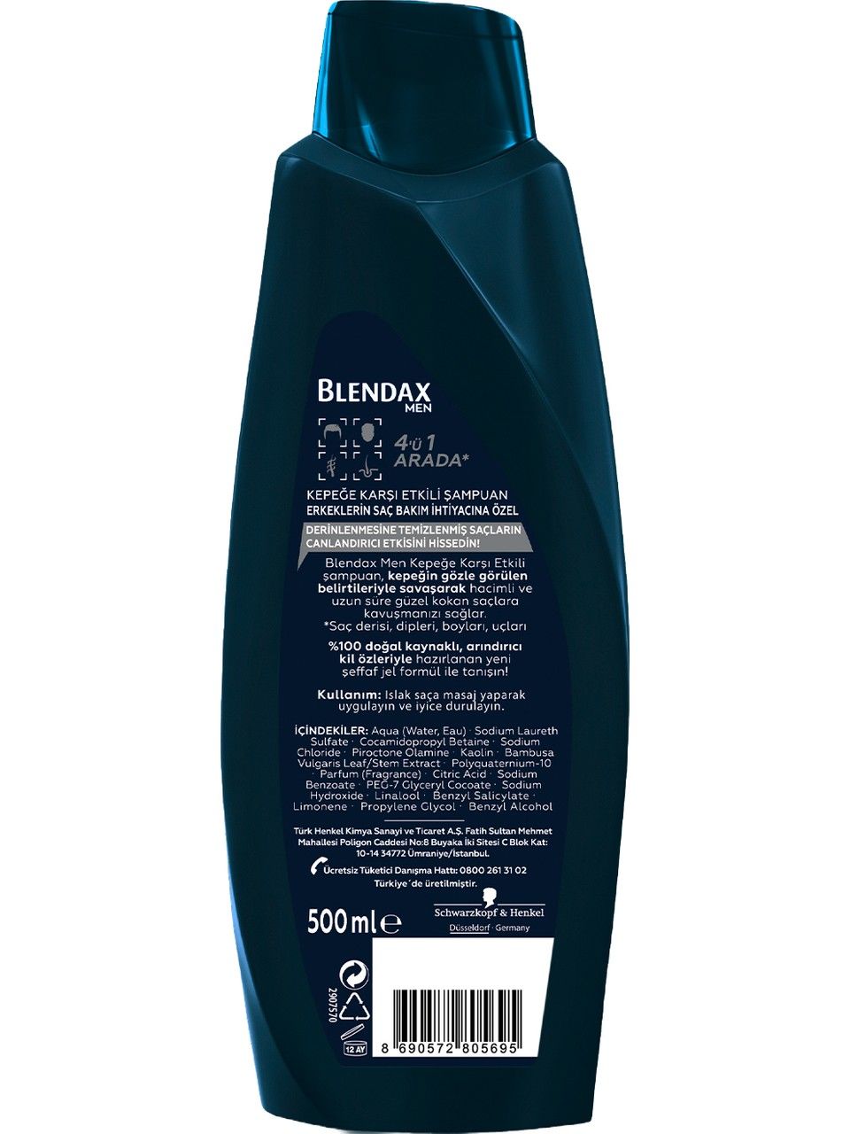 Blendax Men Doğal Kil Özlü Kepeğe Karşı Etkili 4ü1 Arada Erkek Şampuanı 500 ml