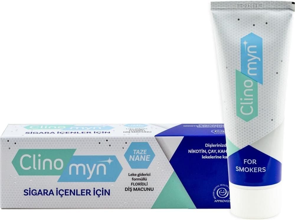 Clinomyn Smokers, sigara içenlerin dişlerinde oluşan lekeleri özel formülüyle temizler ve beyazlatır.