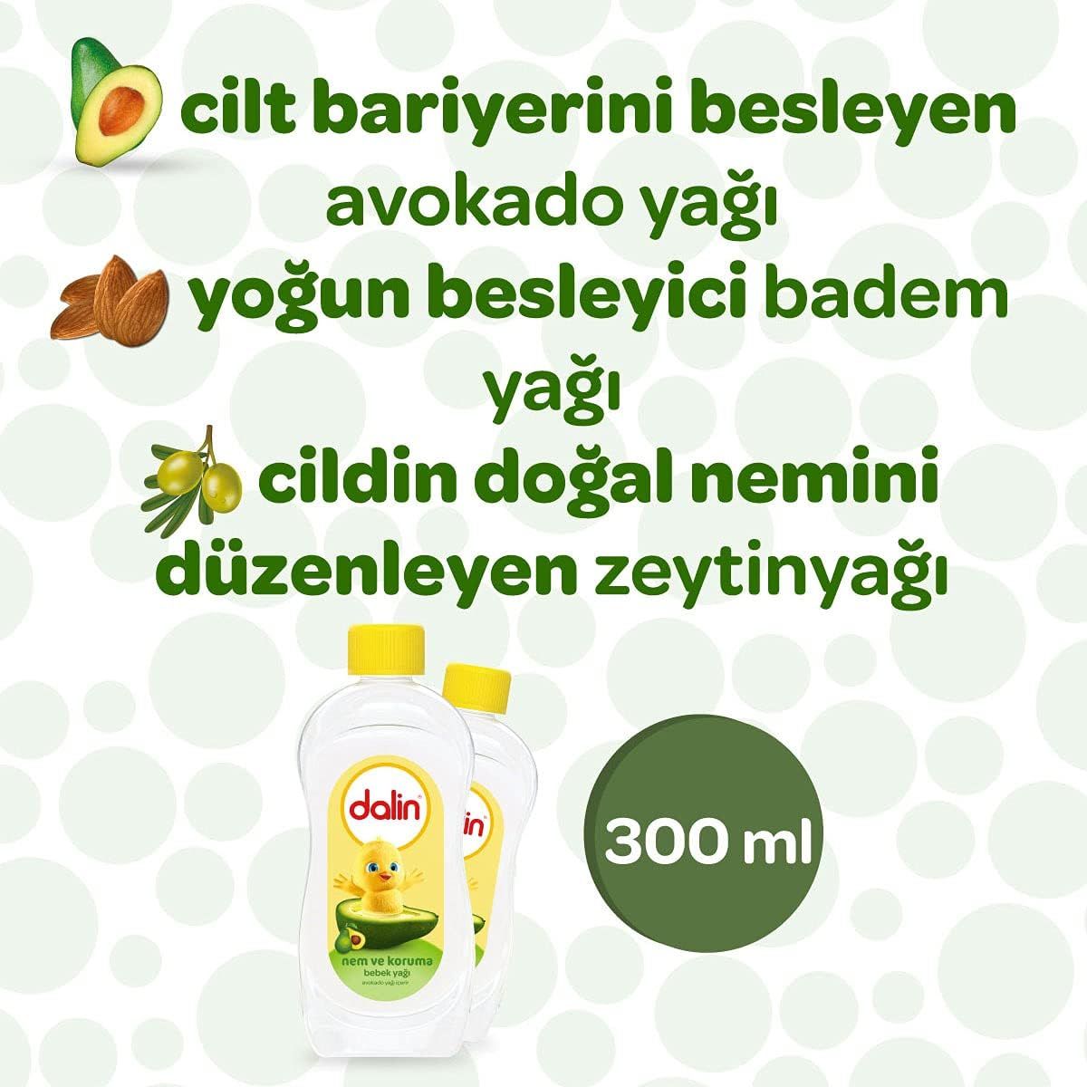 Dalin Nem ve Koruma Avokadolu Bebek Yağı 300 ml - Avokado Yağı ile Yoğun Nem ve Koruma