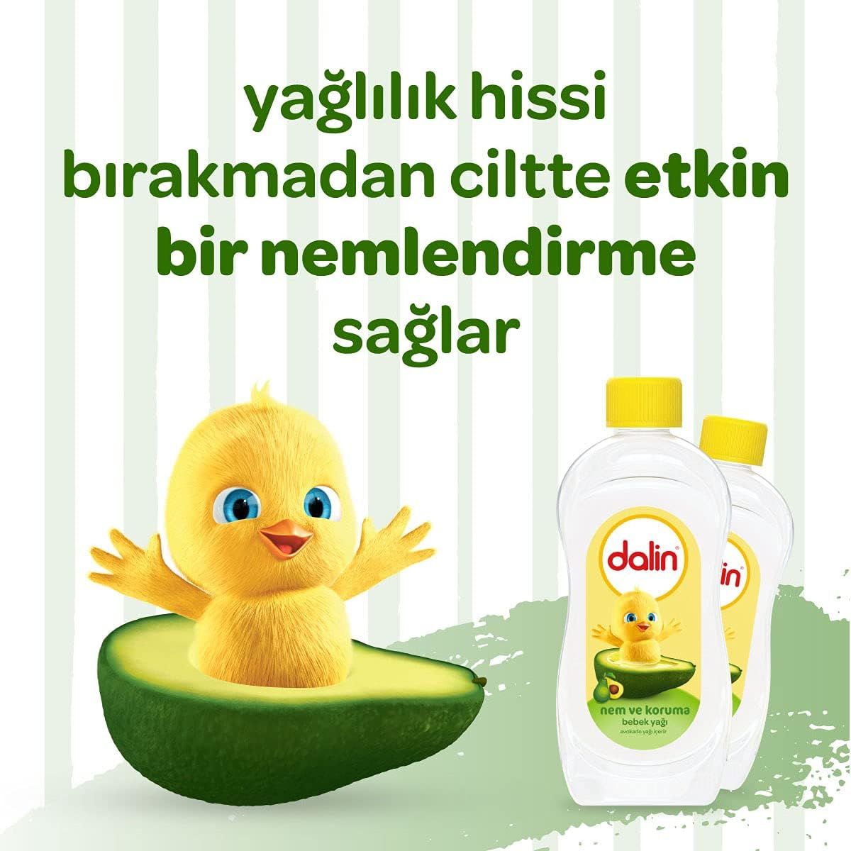 Bebeğinizin cildine doğal nem ve koruma sağlamak için Dalin Nem ve Koruma Avokadolu Bebek Yağı’nı deneyin!