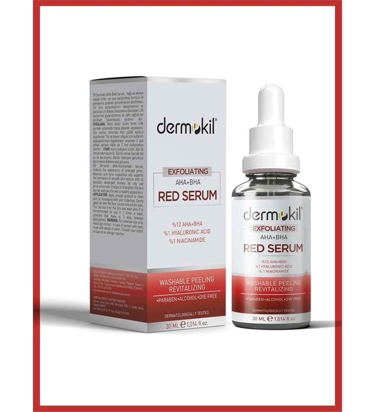 Cildinizi yenilemek ve sağlıklı bir görünüm kazandırmak için Dermokil Exfoliating Aha+Bha Red Serum ürününü deneyin!