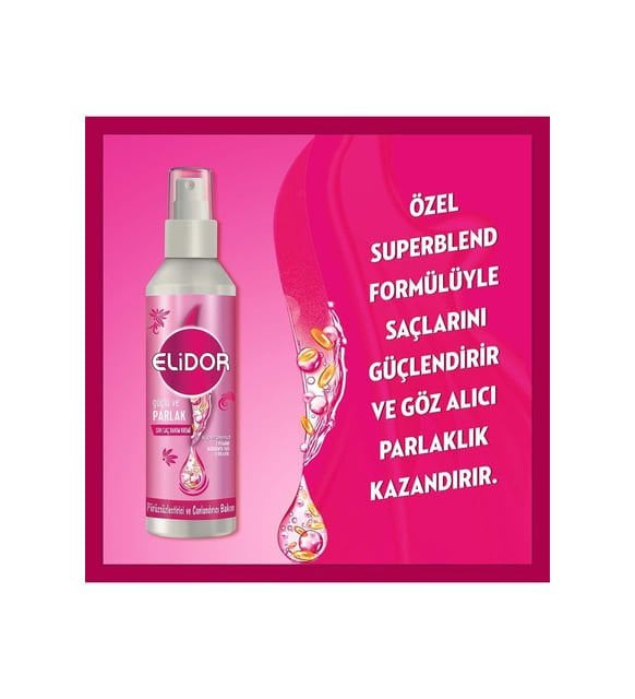 Elidor Superblend Güçlü ve Parlak Sıvı Saç Bakım Kremi ile saçlarınıza hem güç hem de ışıltı kazandırmanın tam zamanı! Bu yeni formül, saçınızın ihtiyaç duyduğu vitamin ve yağları mükemmel bir şekilde bir araya getiriyor. Eşsiz Superblend karışımı, saç dokunuzu yumuşatırken tellerinizi de yenileyerek eski canlılığına kavuşturur.