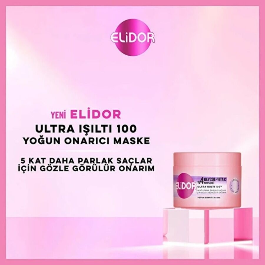 - Elidor Ultra Işıltı Yoğun Parlaklık & Yoğun Onarıcı Saç Maskesi 220 ml ile derinlemesine bakım