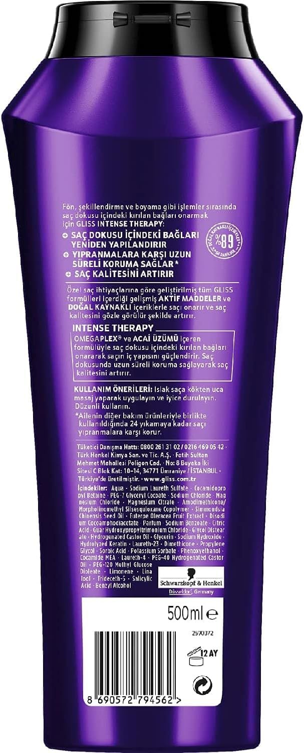 Gliss Intense Therapy Yeniden Yapılandırıcı Şampuan - Omega Plex ve Acai Üzümü ile 500 ml