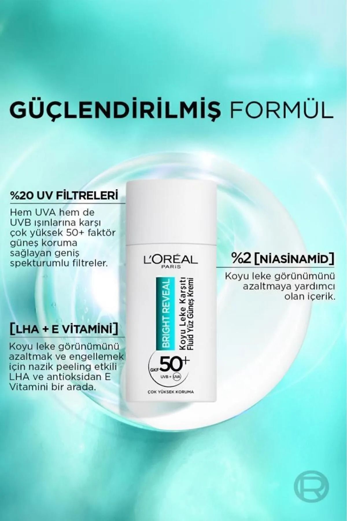 Loreal Paris Bright Reveal SPF 50+ Koyu Leke Karşıtı Fluid Yüz Güneş Kremi 50ml