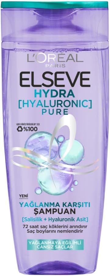 L'Oréal Paris Elseve Hydra Hyaluronic Pure Salisilik Yağlanma Karşıtı Şampuan 300 ml – Yağlanmaya Karşı Arındırıcı ve Nemlendirici Bakım