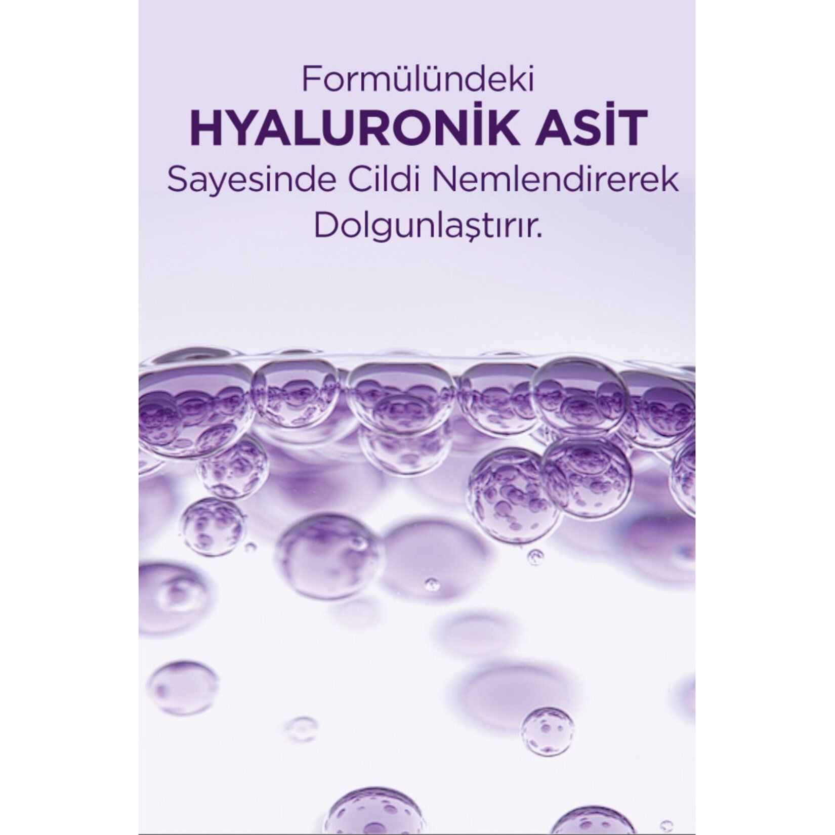 - Hyaluronik Asit: Cildi yoğun şekilde nemlendiren, dolgun ve pürüzsüz bir görünüm sağlayan aktif bir bileşen.