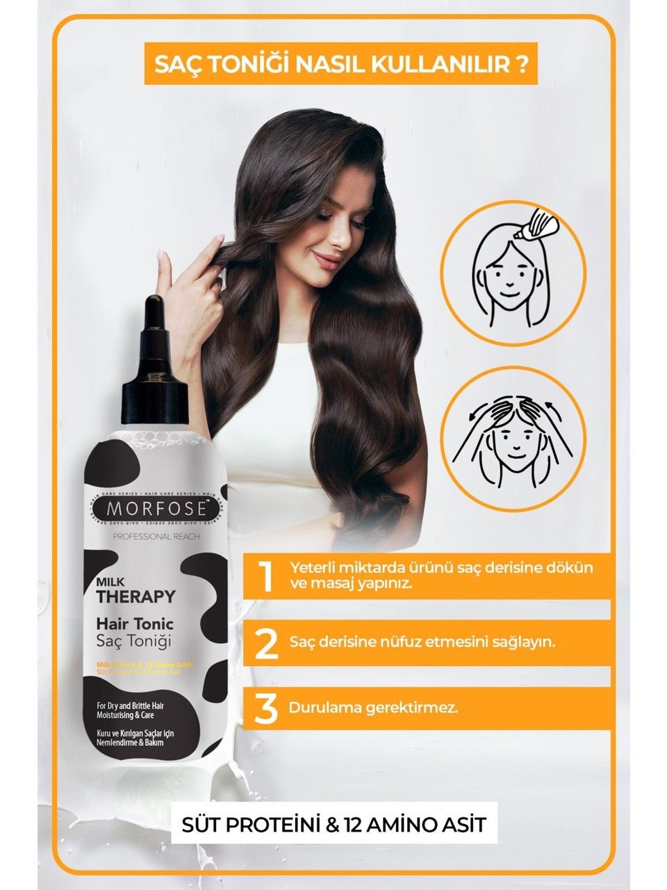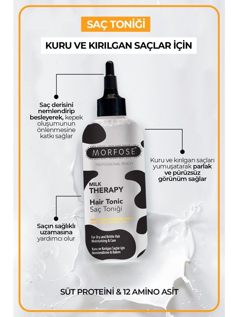 Morfose Milk Therapy Saç Toniği, saçlarınıza yoğun bir nemlendirme ve besleme sağlayarak daha sağlıklı ve parlak görünmelerini destekler. Yıpranmış saçlar için etkili bir bakım sunar.