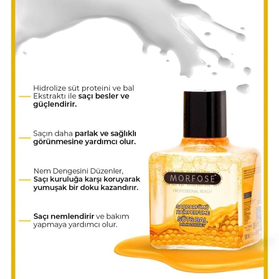 Saçlarının her an temiz, hoş kokulu ve bakımlı görünmesini istiyorsan, Morfose Süt & Bal Saç Parfümü 100 ml ile saç bakım rutinine keyifli bir dokunuş ekle.