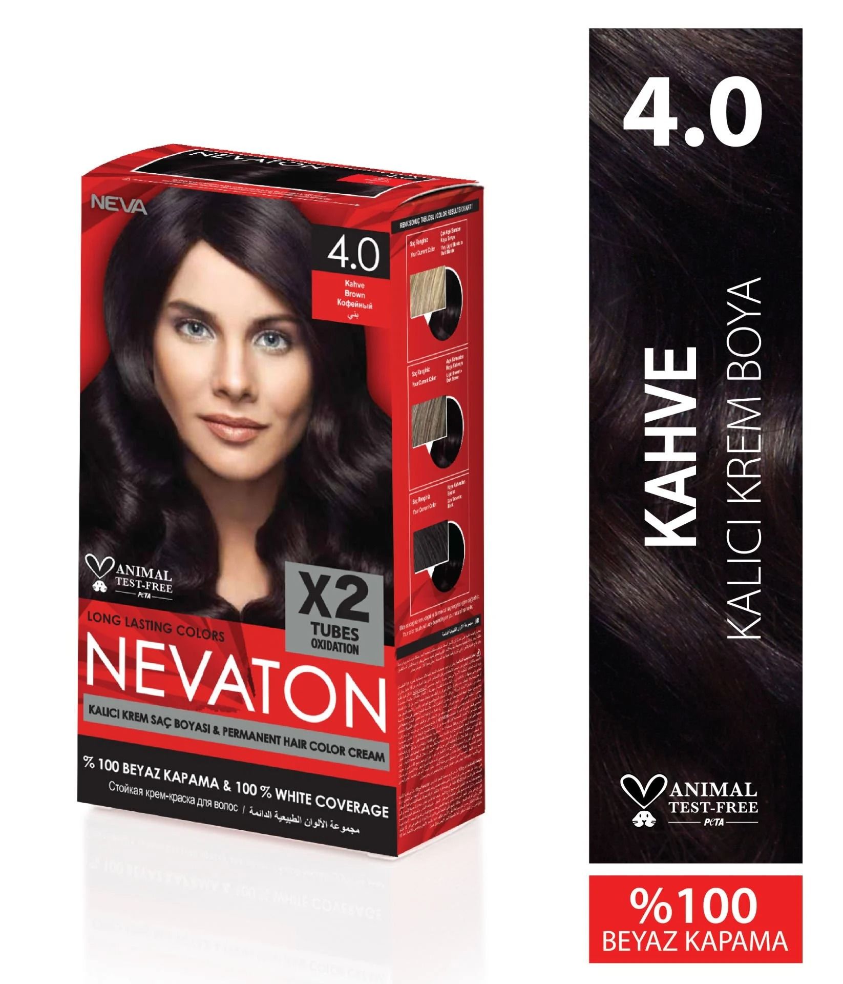 Nevaton 2 Li Saç Boyası 4.0 Kahve - Doğal Kahve Tonu ve Parlaklık