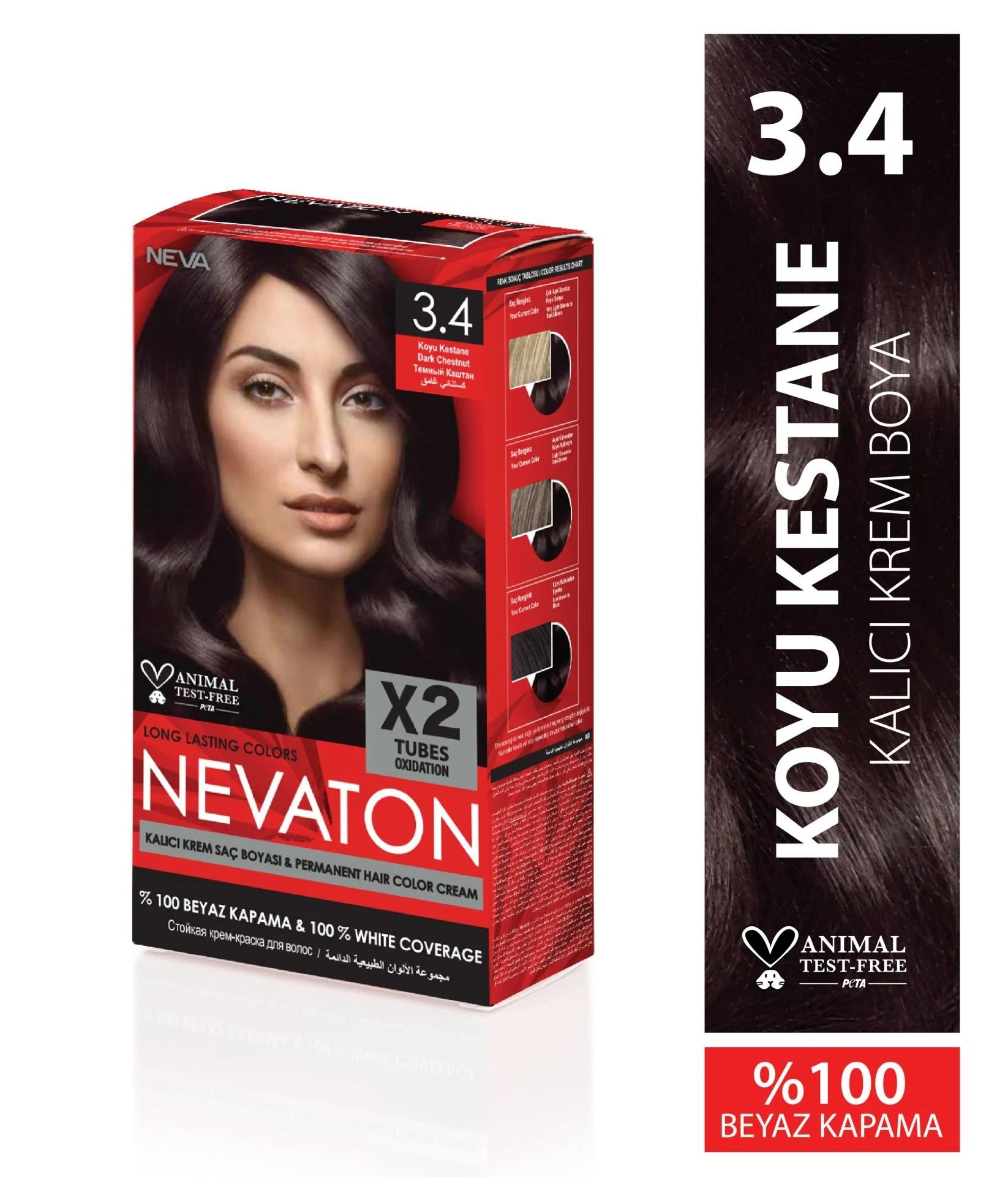 Nevaton Saç Boyası 3.4 Koyu Kestane 1 Kutuda 2 Boya