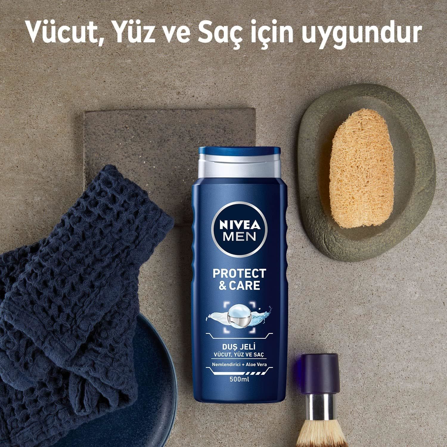Nivea Men Protect & Care Duş Jeli 500 ml 3’ü 1 Arada Vücut, Saç ve Yüz