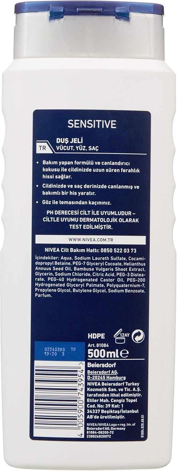 Nivea Men Sensitive Duş Jeli 500 ml 3’ü 1 Arada Vücut, Saç ve Yüz