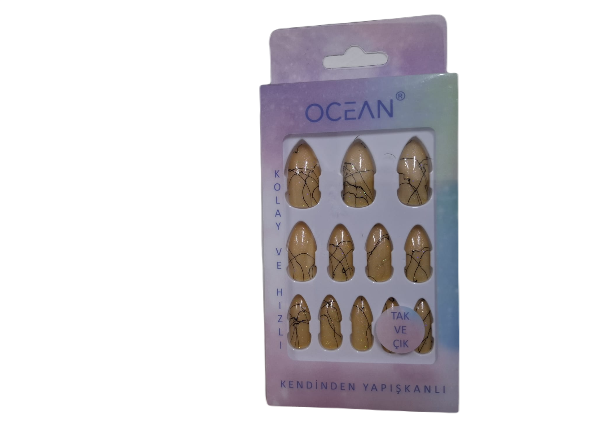 Ocean Solingen Desenli Takma Tırnak Tak Ve Çık Kendinden Yapışkanlı Takma Tırnak ASU-883 (12 Adet)