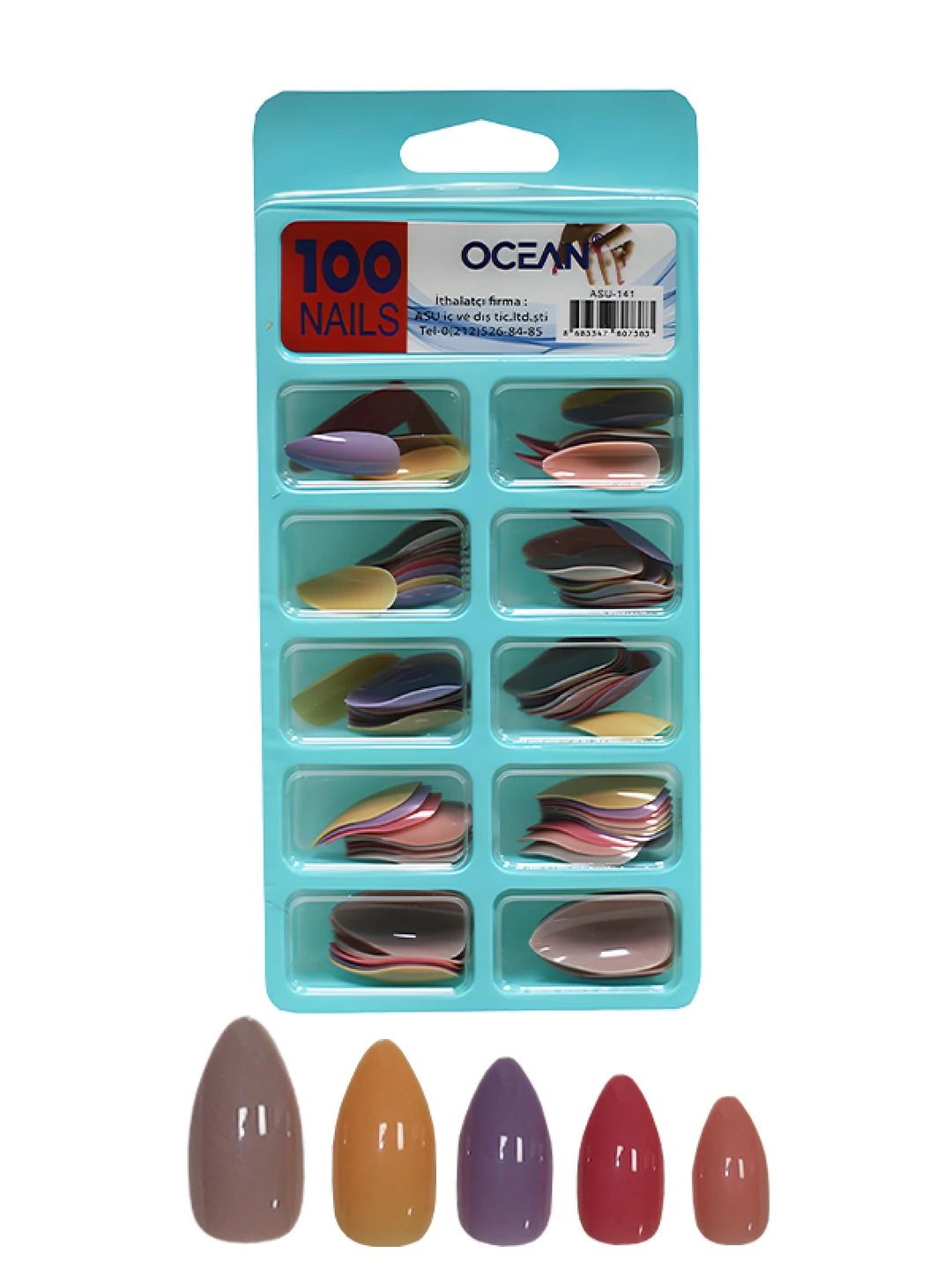 Ocean Solingen Karışık Renk Takma Tırnak 100'lü Kutulu Badem Protez Tırnak ASU-141
