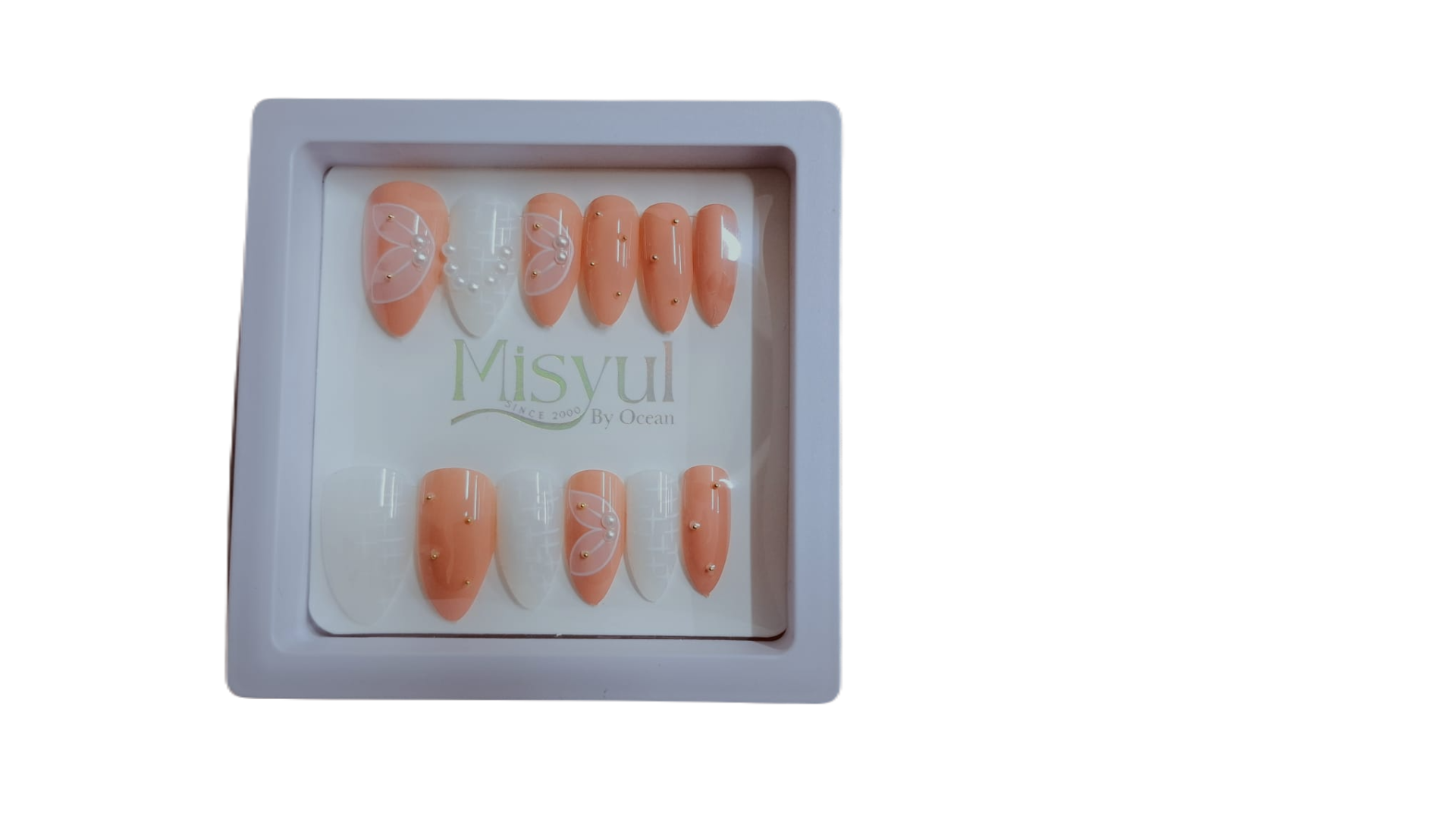 Ocean Solingen, misyul takma tırnak, koyu pembe tırnak, desenli tırnak, 12'li tırnak seti, zarif takma tırnak, kolay uygulanabilir tırnak.
