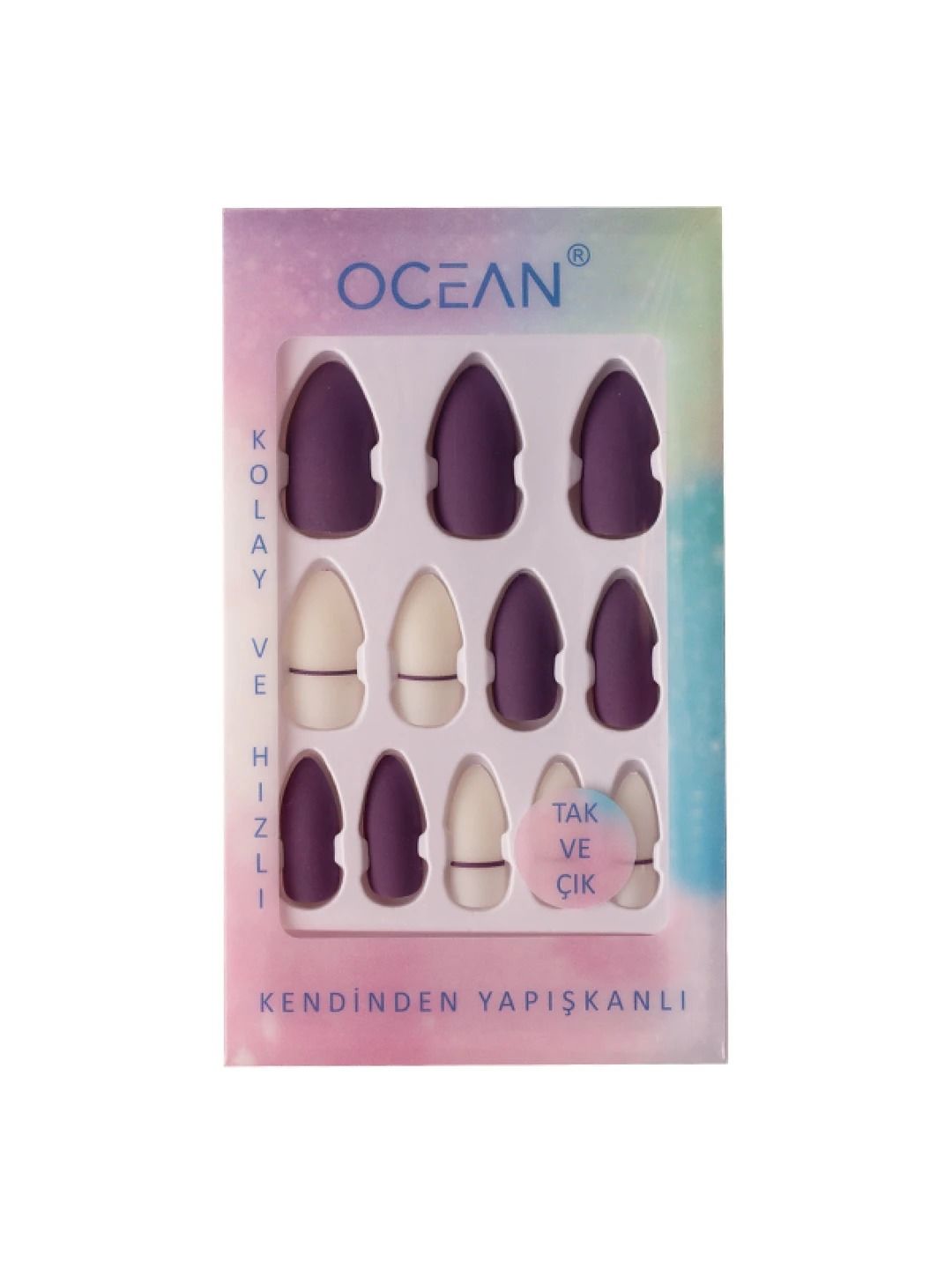 Ocean Solingen Mor Beyaz Tırnak Tak Ve Çık Kendinden Yapışkanlı Takma Tırnak ASU-780 12 Adet