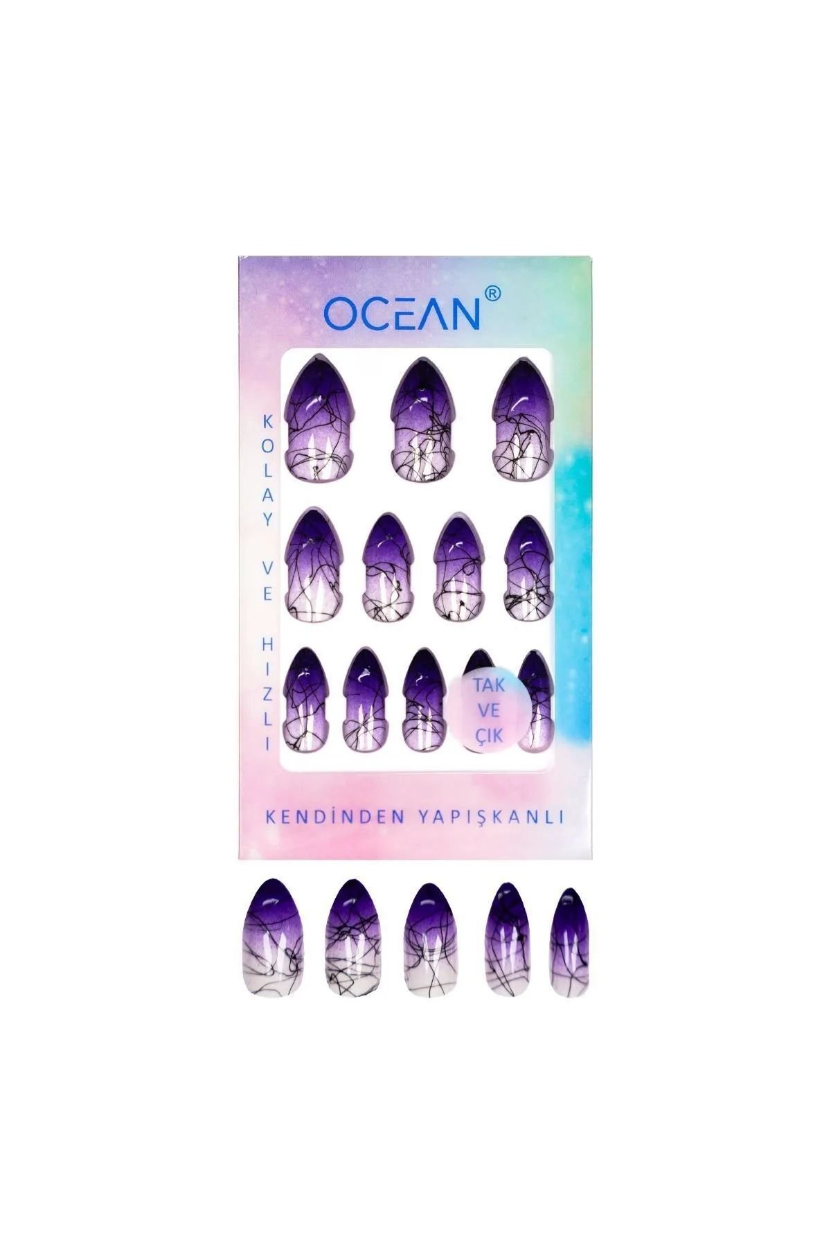 Ocean Solingen Mor Desenli Takma Tırnak Tak Ve Çık Kendinden Yapışkanlı Takma Tırnak ASU-839 (12 Adet)