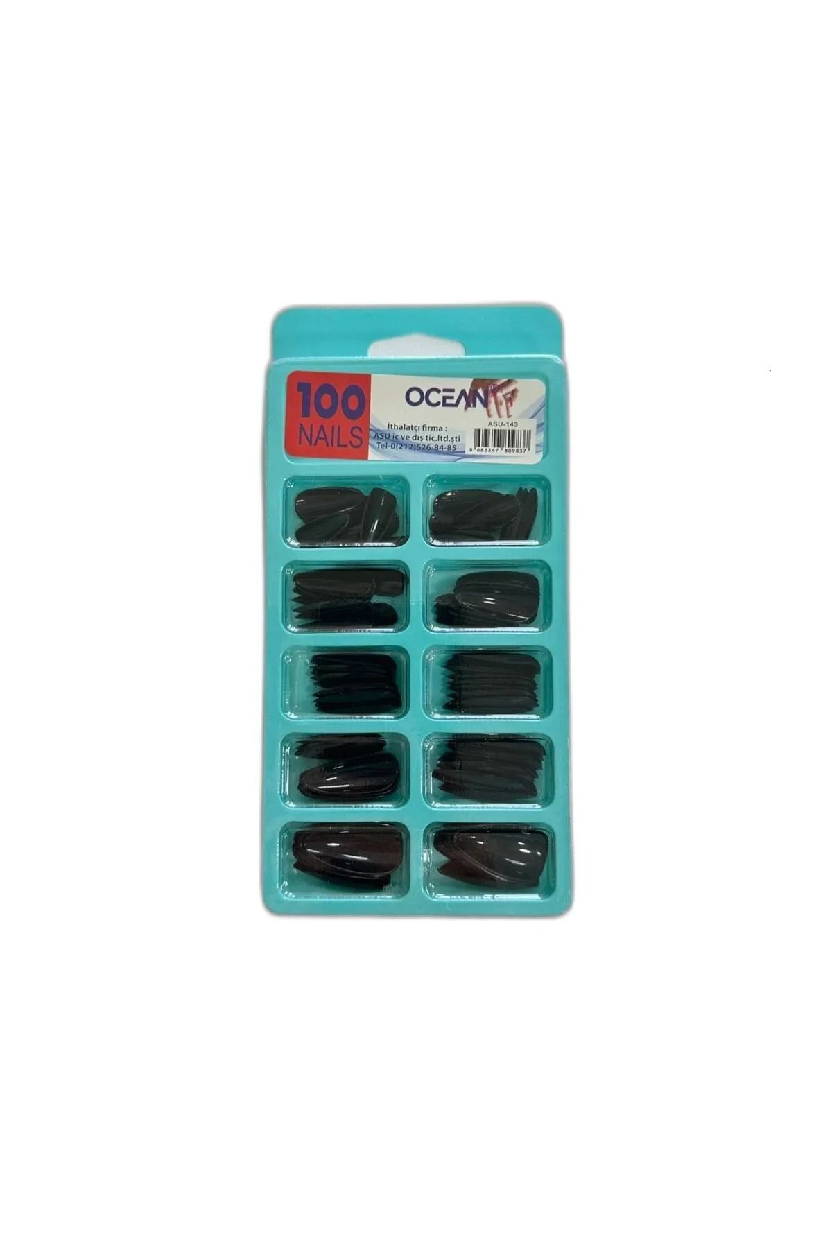 Ocean Solingen Siyah Renk Takma Tırnak 100'lü Kutulu Badem Protez Tırnak ASU-143