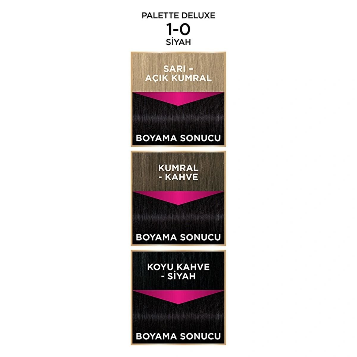 Yoğun siyah rengin zarif etkisini yaşamak için Palette Deluxe 1-0 Siyah Saç Boyasını hemen deneyin!