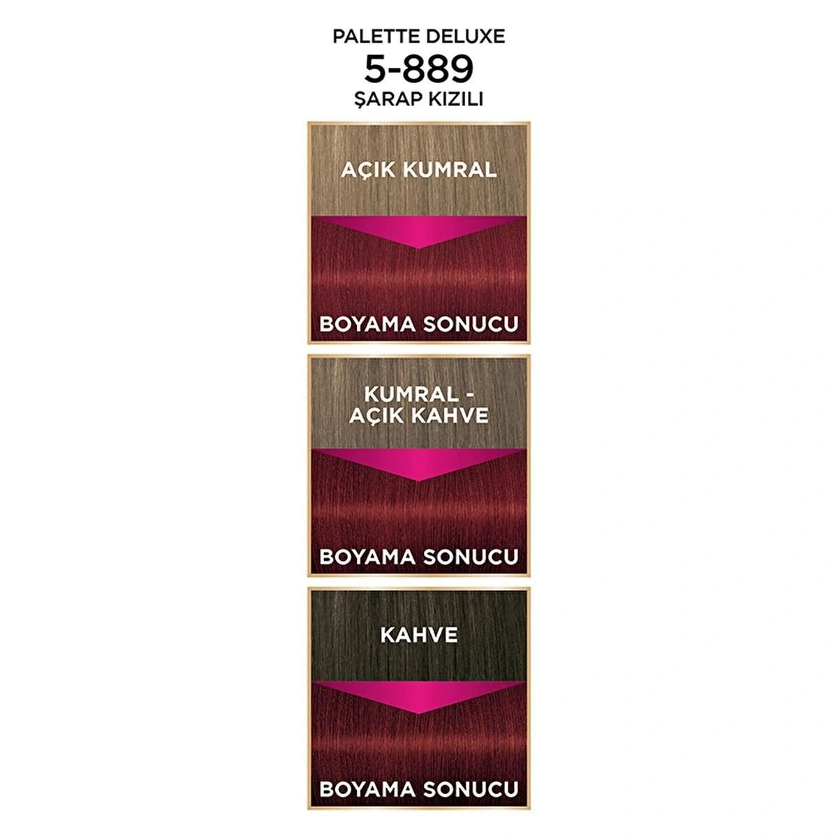 Palette Deluxe 5-889 Şarap Kızılı, soğuk kırmızı tonlardan hoşlananlar ve sofistike bir görünüm elde etmek isteyenler için mükemmel bir tercihtir.