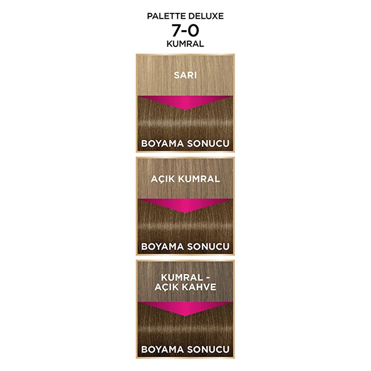 Orta kumralın zarif ve parlak görünümünü yaşamak için hemen Palette Deluxe Kumral 7.0 Saç Boyasını deneyin!