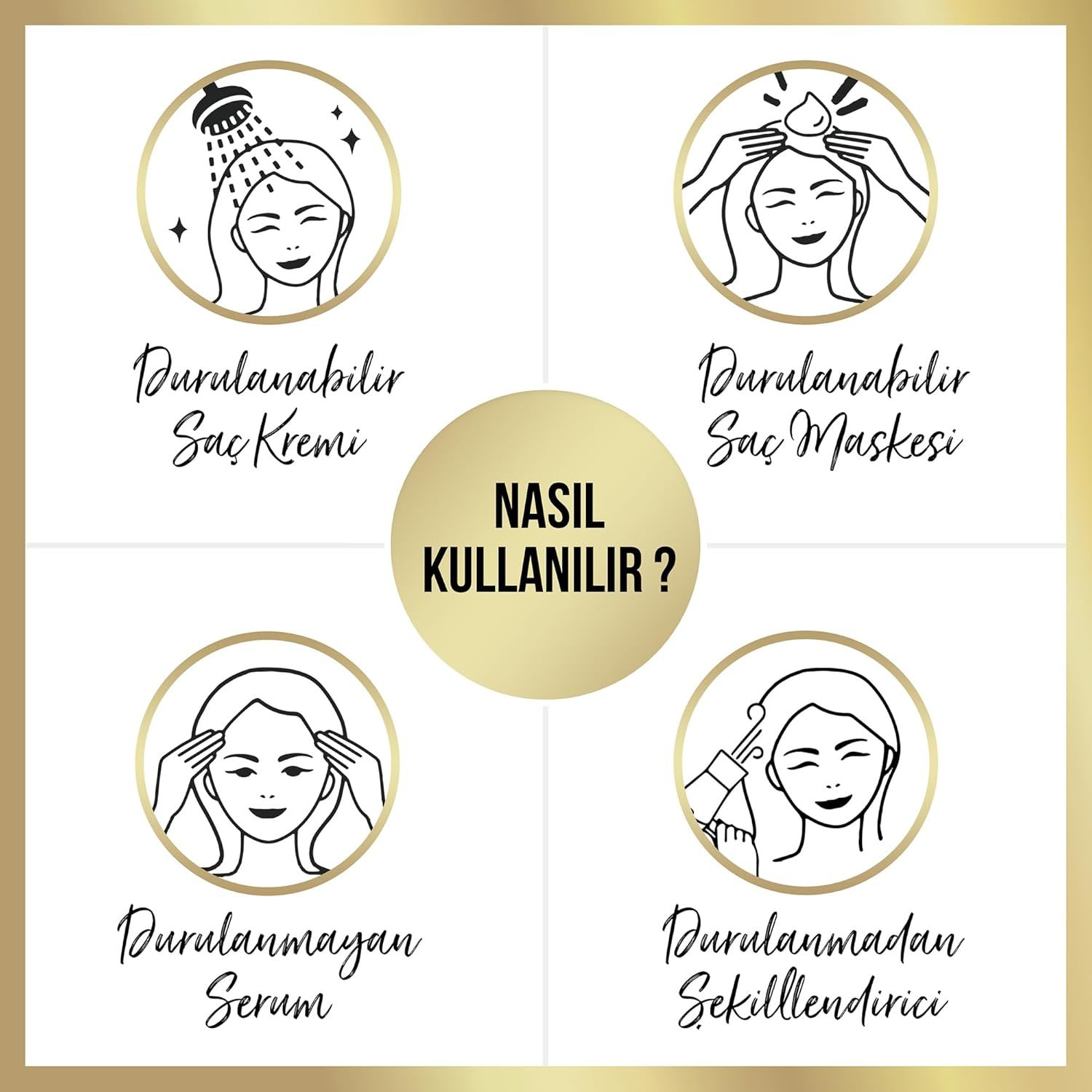 Temiz ve nemli saç uçlarına uygulayın. Durulama gerektirmez, günlük kullanım için uygundur.