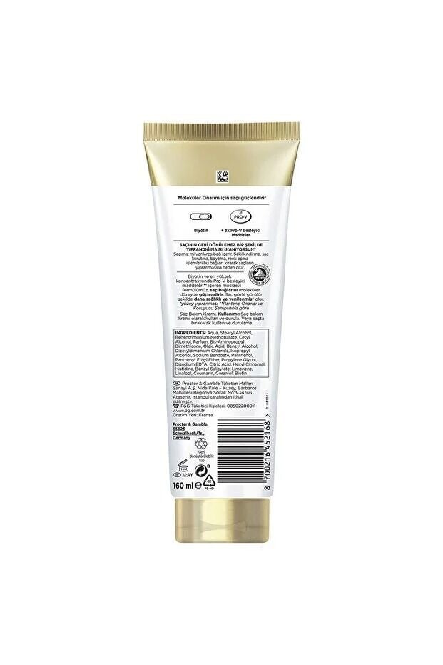 Pantene Pro-V Miracles Molecular Bond Repair Saç Bakım Kremi Yıpranmış Saçlar İçin 160 ml, yoğun işlem görmüş, ısıya ve kimyasal uygulamalara maruz kalmış saçların ihtiyaç duyduğu derinlemesine onarımı sağlamak üzere geliştirilmiştir. Gelişmiş Pro-V formülü ve moleküler bağ onarma teknolojisi sayesinde saç telinin iç yapısına nüfuz ederek, saçın kaybettiği gücü ve elastikiyeti geri kazandırmaya yardımcı olur.