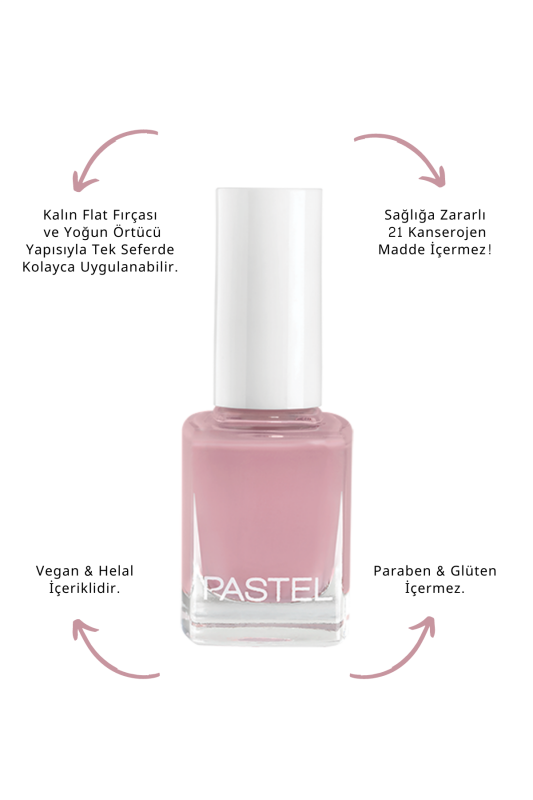 Pastel Oje 258, tırnaklarınıza modern bir hava katarken, bakım yapar.