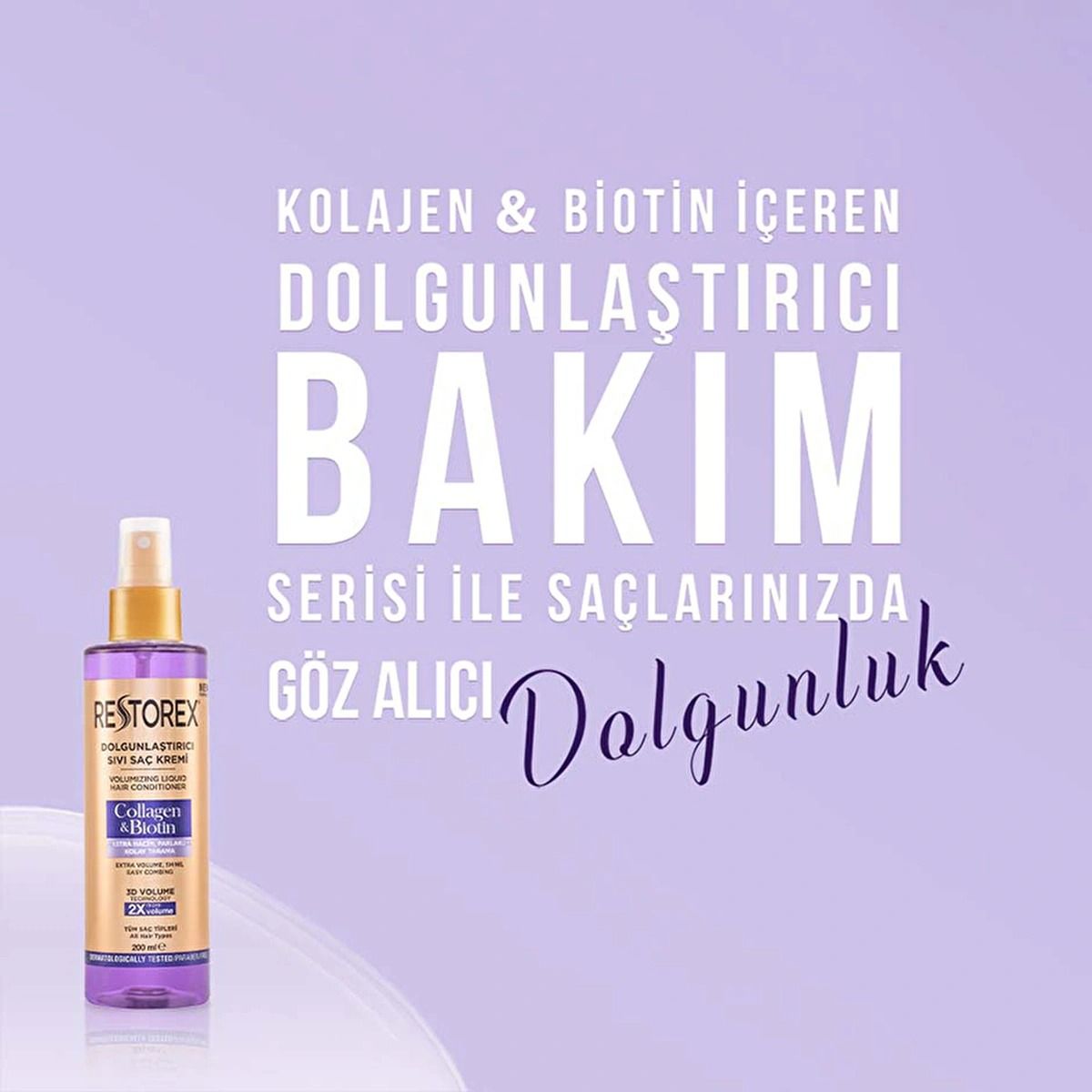 Restorex Collagen Biotin Dolgunlaştırıcı Sıvı Saç Kremi 200 ml - Dolgun ve Güçlü Saçlar İçin Özel Bakım