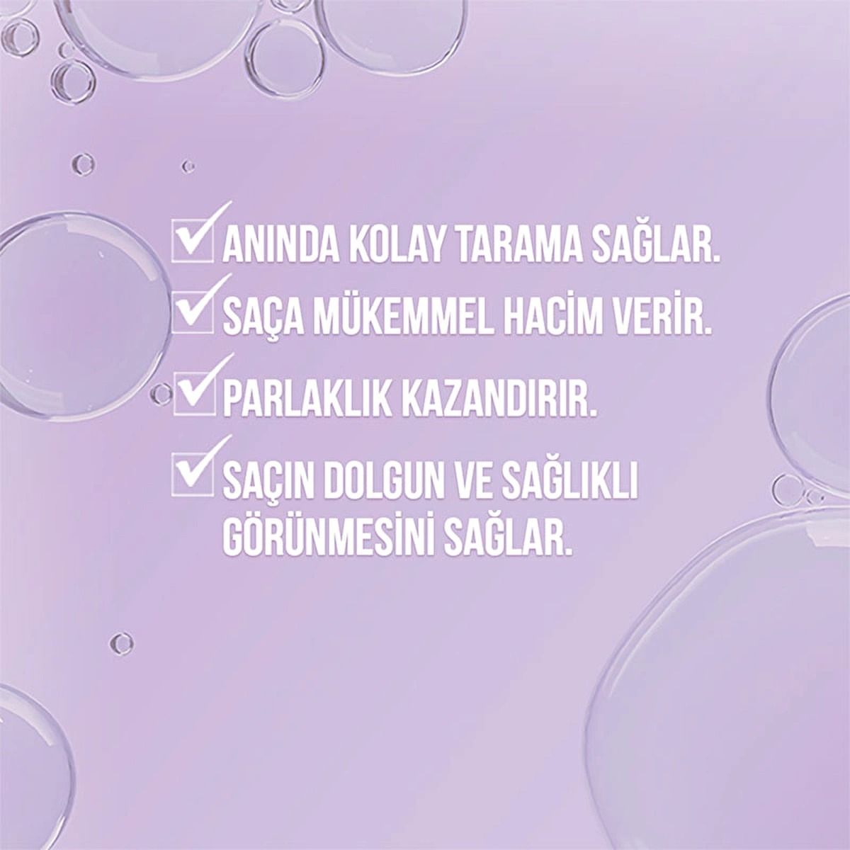 Temiz ve nemli saça uygulayın. Durulama gerektirmeden saça dolgunluk kazandırır. Günlük kullanım için uygundur.