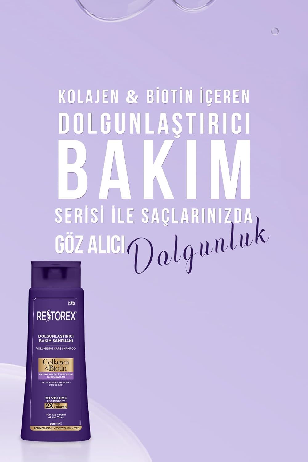 - Restorex Collagen & Biotin Dolgunlaştırıcı Bakım Şampuanı, ince telli ve hacimsiz saçlara hacim kazandırmak ve saç tellerini güçlendirmek için mükemmel bir çözümdür. Kolajen ve biotin içeren formülü sayesinde saç tellerini kalınlaştırarak dolgun ve sağlıklı saçlara kavuşmanıza yardımcı olur. Saç köklerini besleyip saç tellerini güçlendiren bu şampuan, saçların doğal parlaklığını ve hacmini artırır. Düzenli kullanımda saçlarınızın daha canlı, dolgun ve parlak görünmesini sağlar. Hacimli ve güçlü saçlar için bu şampuan ideal bir tercihtir!