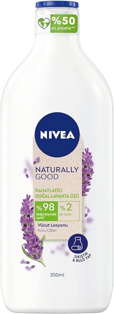 Ürün Açıklaması: Nivea Doğal Lavanta Özlü Vücut Losyonu, lavanta özleri ile zenginleştirilmiş formülüyle cildinize hem nem sağlar hem de huzur verici bir aroma sunar. Cilt üzerinde rahatlatıcı bir etki bırakır.