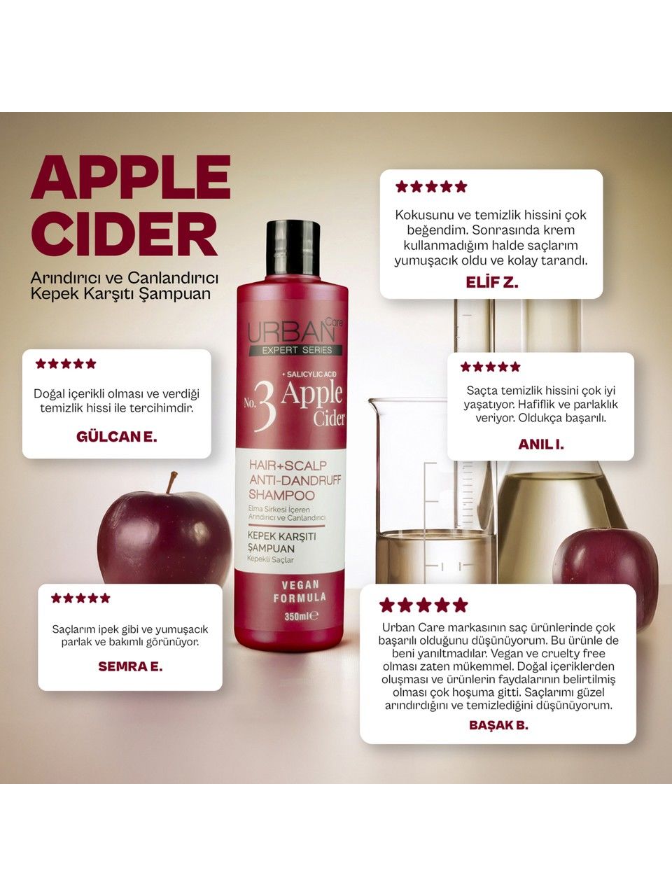 Urban Care No.3 Expert Apple Cider Kepek Karşıtı Şampuan 350 ml, kepek sorununu çözmek için ideal bir şampuandır. Hemen satın alın ve sağlıklı saçlarınızın keyfini çıkarın!