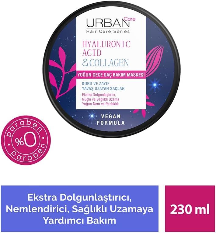Urban Care Saç Bakım Maskesi Hyaluronik Asit & Kolajen 230 ml, saçınıza ihtiyaç duyduğu nemi ve gücü geri kazandırmak için geliştirilmiş yenilikçi bir formüle sahiptir. Hyaluronik asit ve kolajenin güçlü etkilerini birleştirerek, saç tellerinizi derinlemesine besler ve onarır. Saçlarınızı yumuşatırken, doğal parlaklık kazandırır ve daha dolgun bir görünüm sağlar.