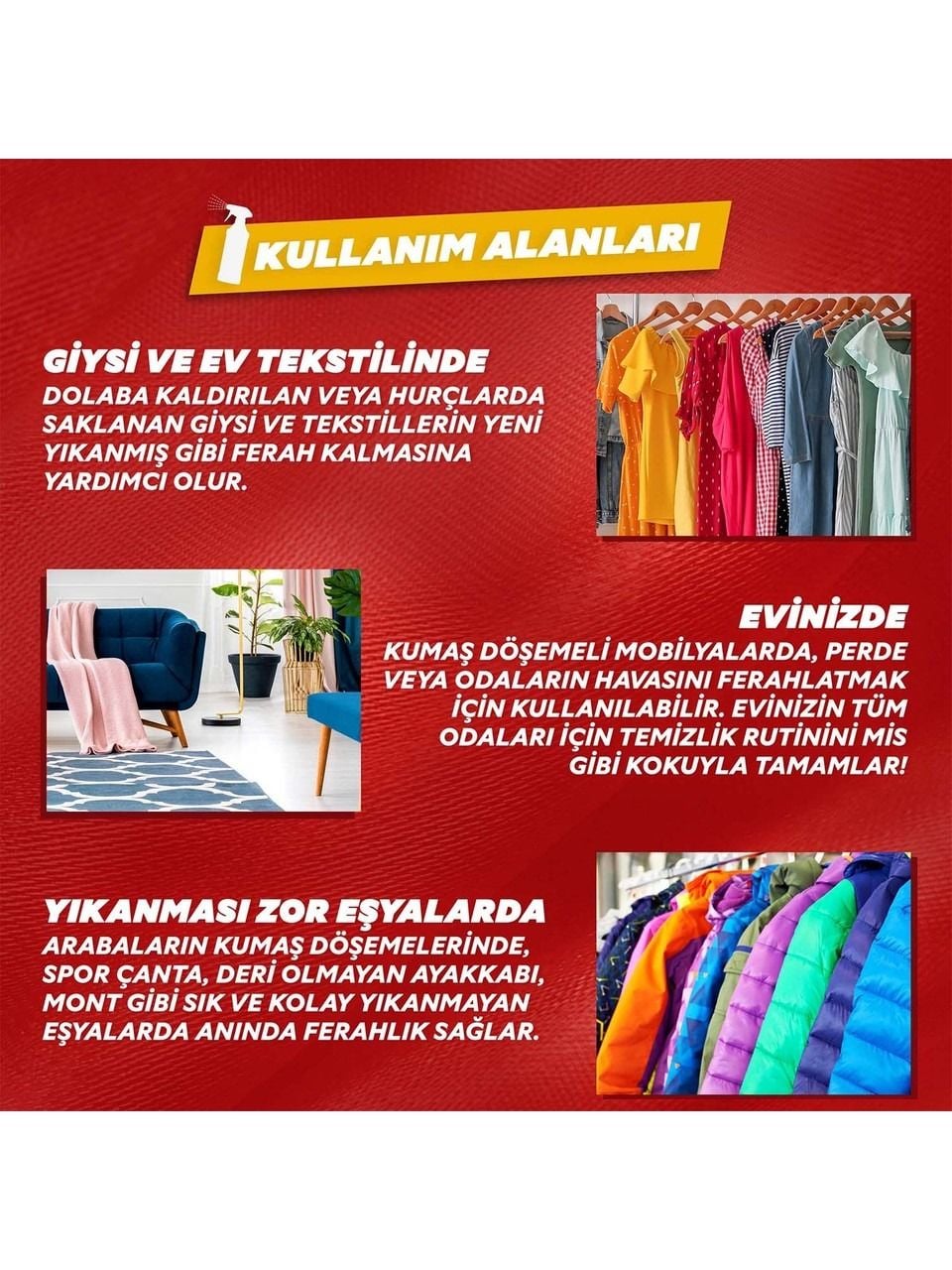 - Ne kadar süre etkili olur? - Her püskürtmede kumaşlarınızda uzun süre kalıcı tazelik sağlar.